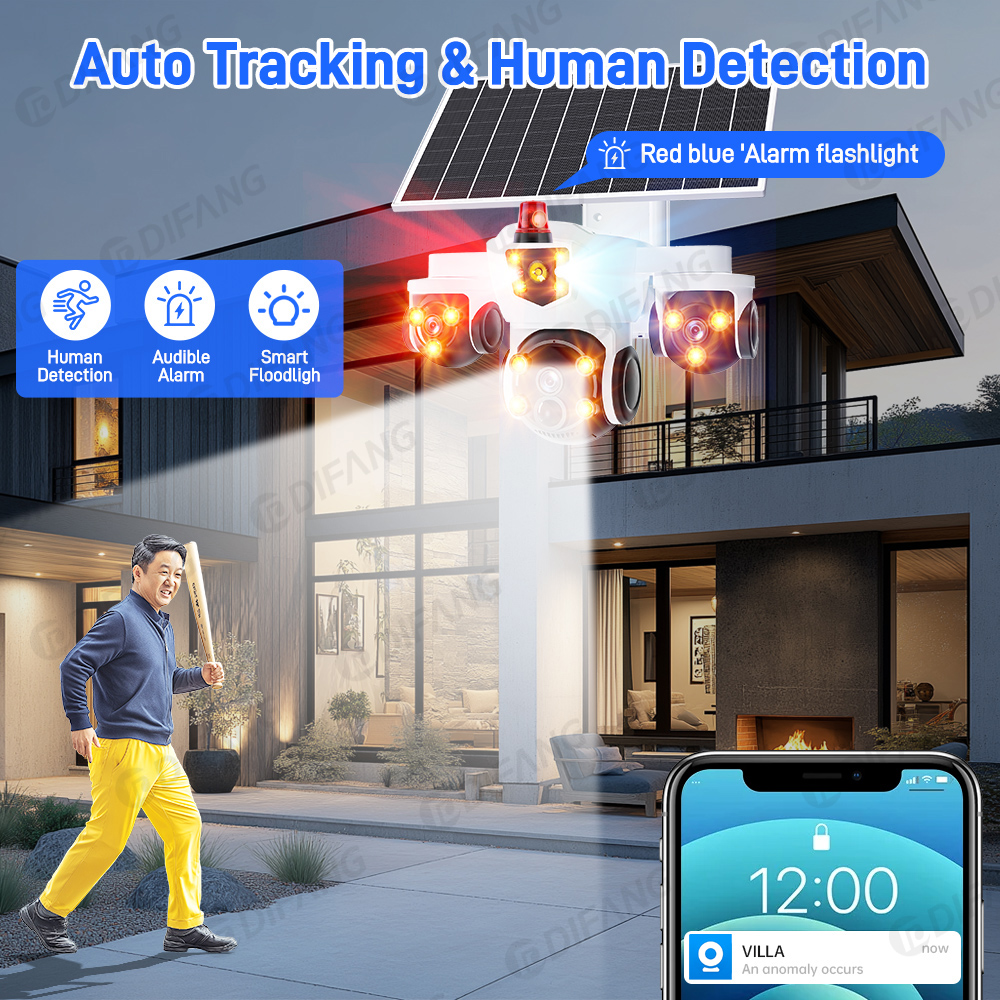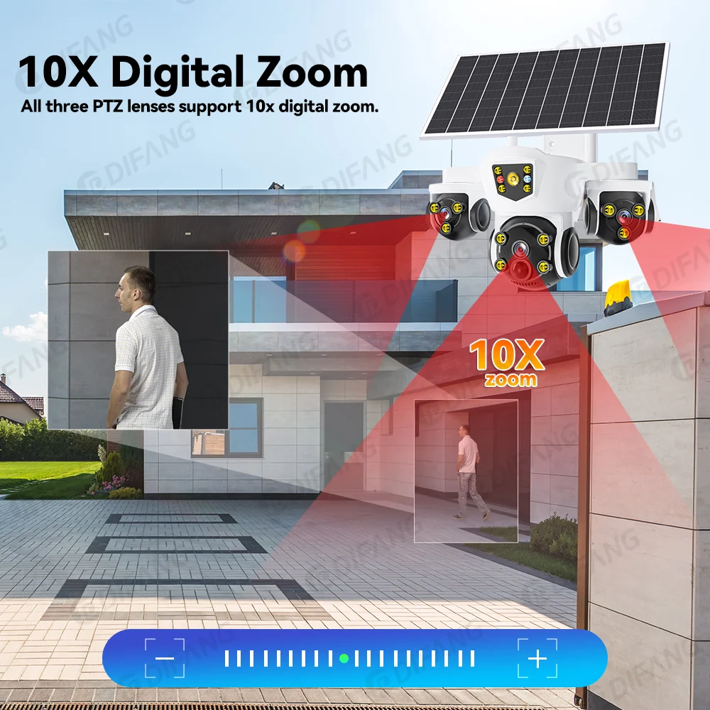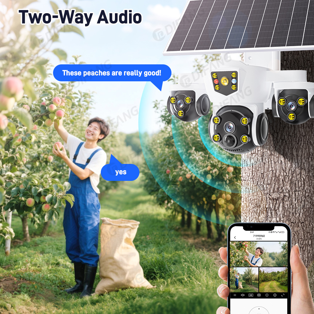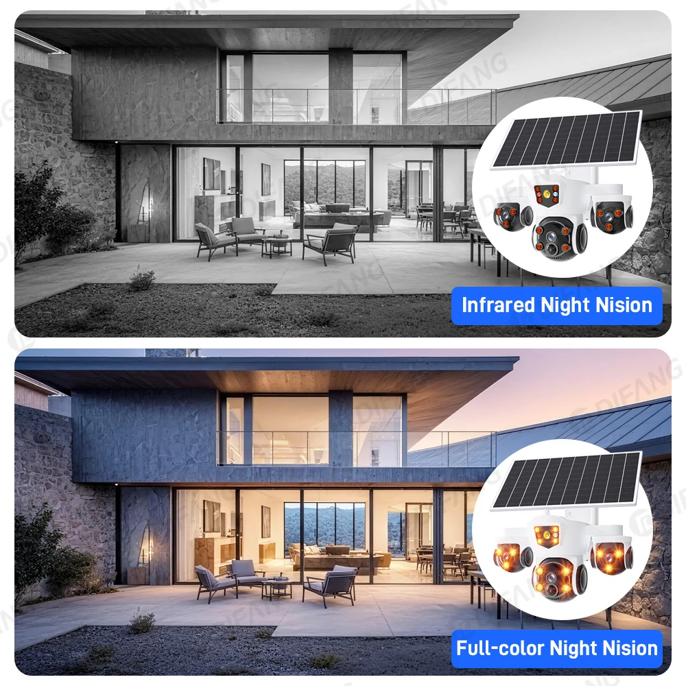 V380 Pro WiFi IP Solar Camera Outdoor Triple Lenses Triple Screens Security Video Monitor Night Vision Waterproof CCTV Cameras