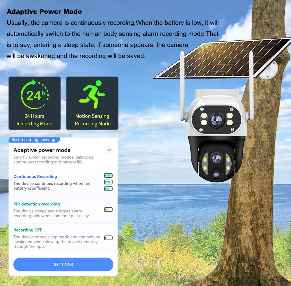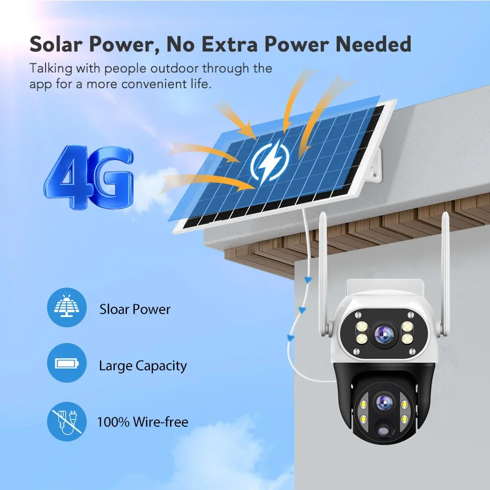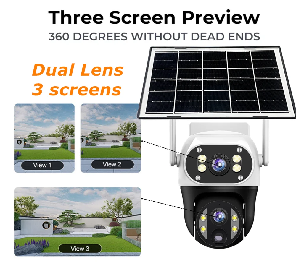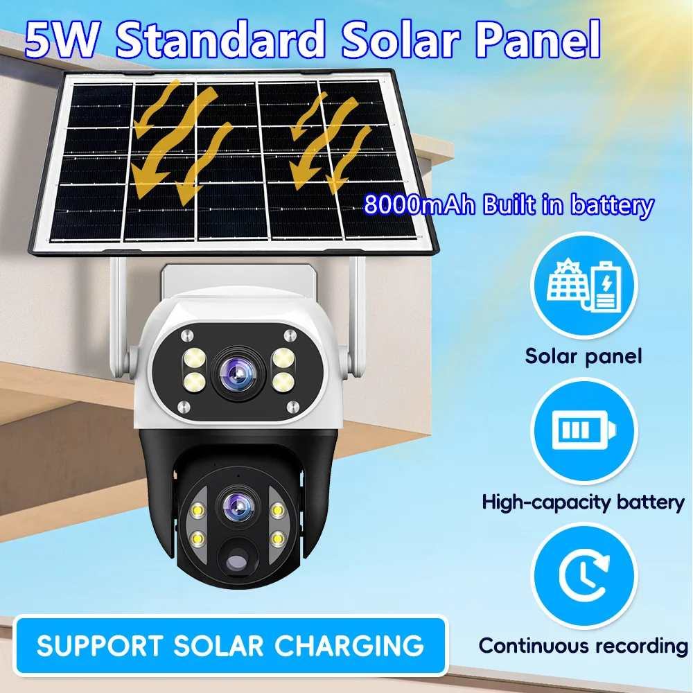 1.The camera can be detached with a large capacity battery, And solar panel is converted into energy by absorption and heat absorption to power the battery without connecting, the power supply easy to navigate.