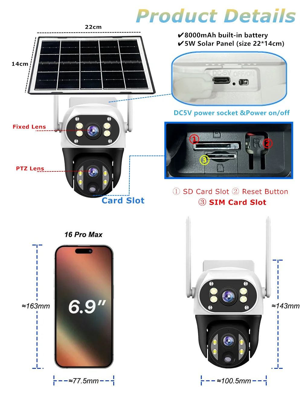 ✅Mini size solar camera Lightweight, flexible in movement, able to meet daily security needs