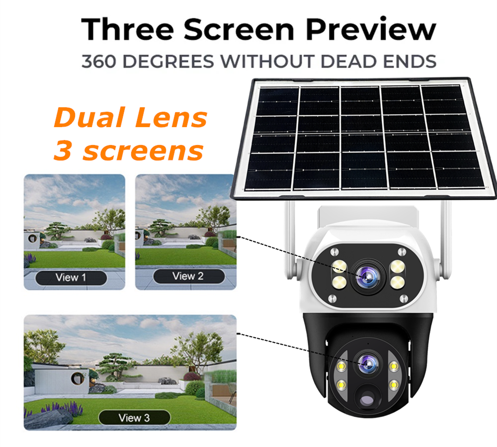 A : SAVE MONEY. The camera has 2 lens & 3 screen =2x Bullet Cameras+1x PTZ Camera.