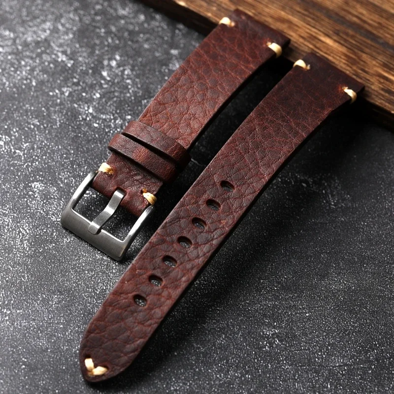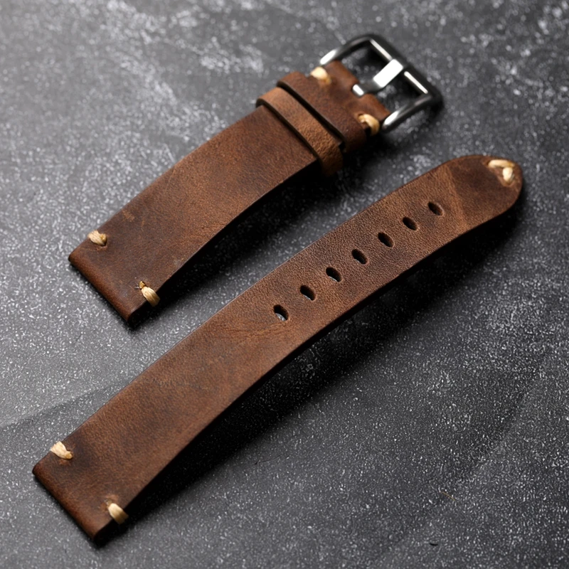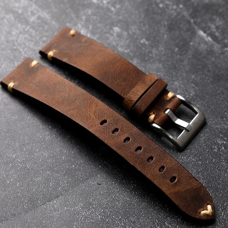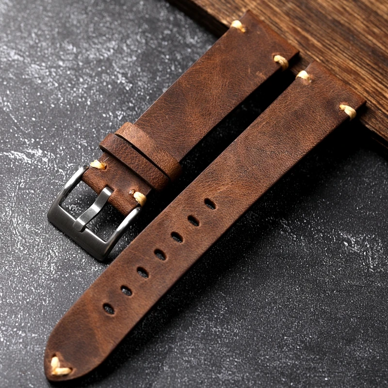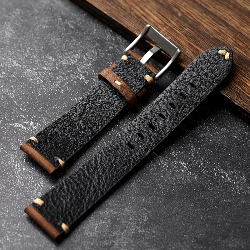 Vintage Handmade Genuine Leather Watchband 18 20 22MM Old Brown Black Soft Men’s Watch Strap