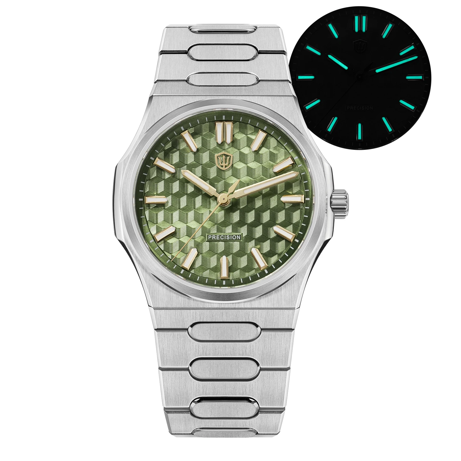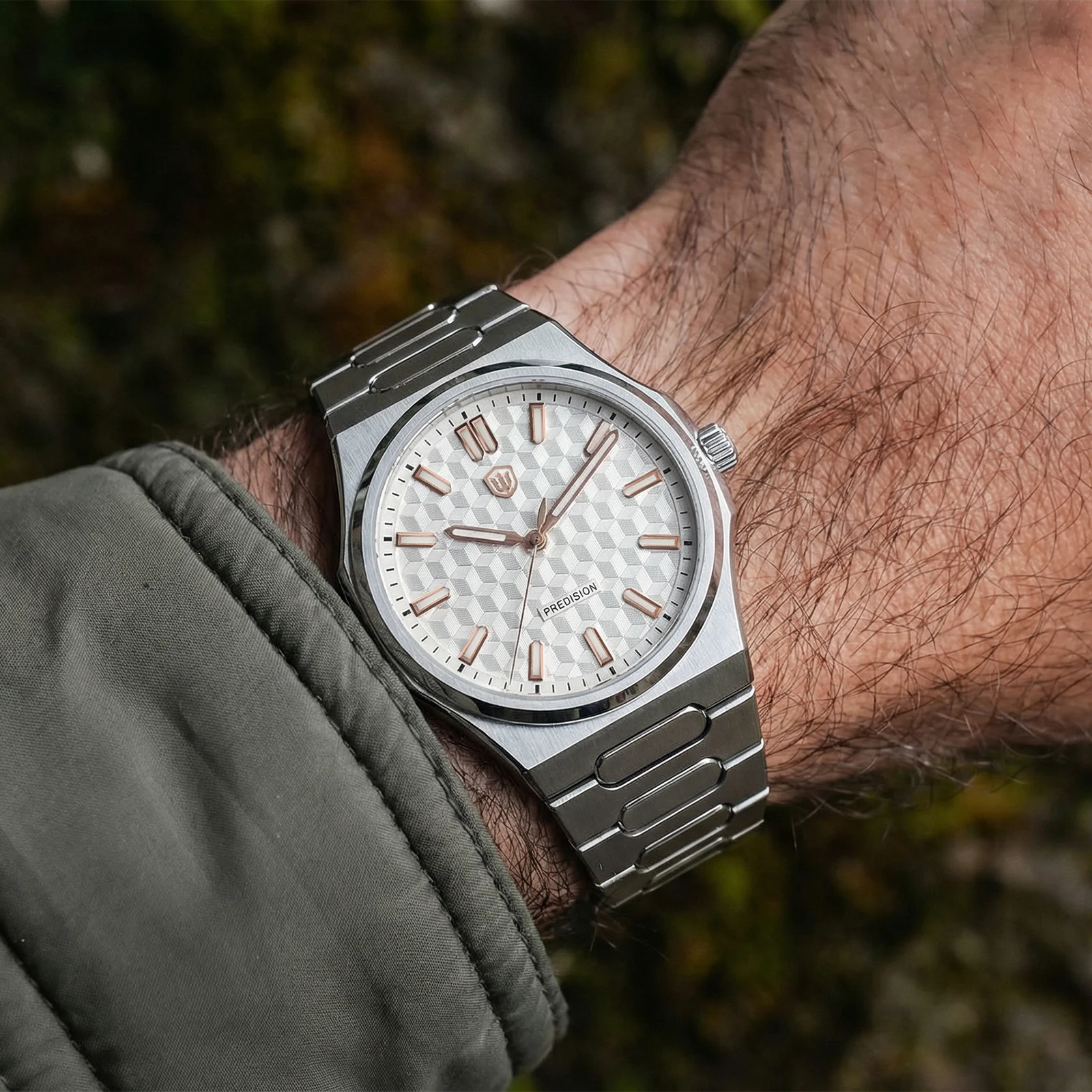 Bracelet: Solid stainless steel bracelet, screw pins, high-quality brushed finishing