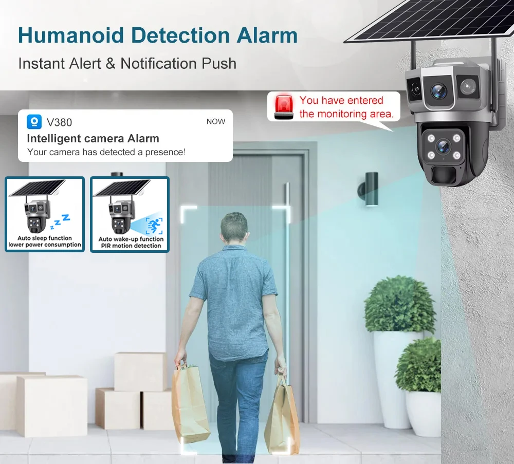 * This video surveillance camera uses a highly sensitive PIR motion sensor and AI detection to double the control and reduce false alarms,