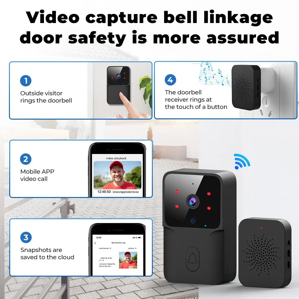 Wireless Video Doorbell Camera: Support 2.4G WiFi and APP connection, 480P high resolution, presenting you clearer pictures & videos and more details. 2-Way Audio: With built-in mic, you can see and talk to your visitors at anytime and anywhere.