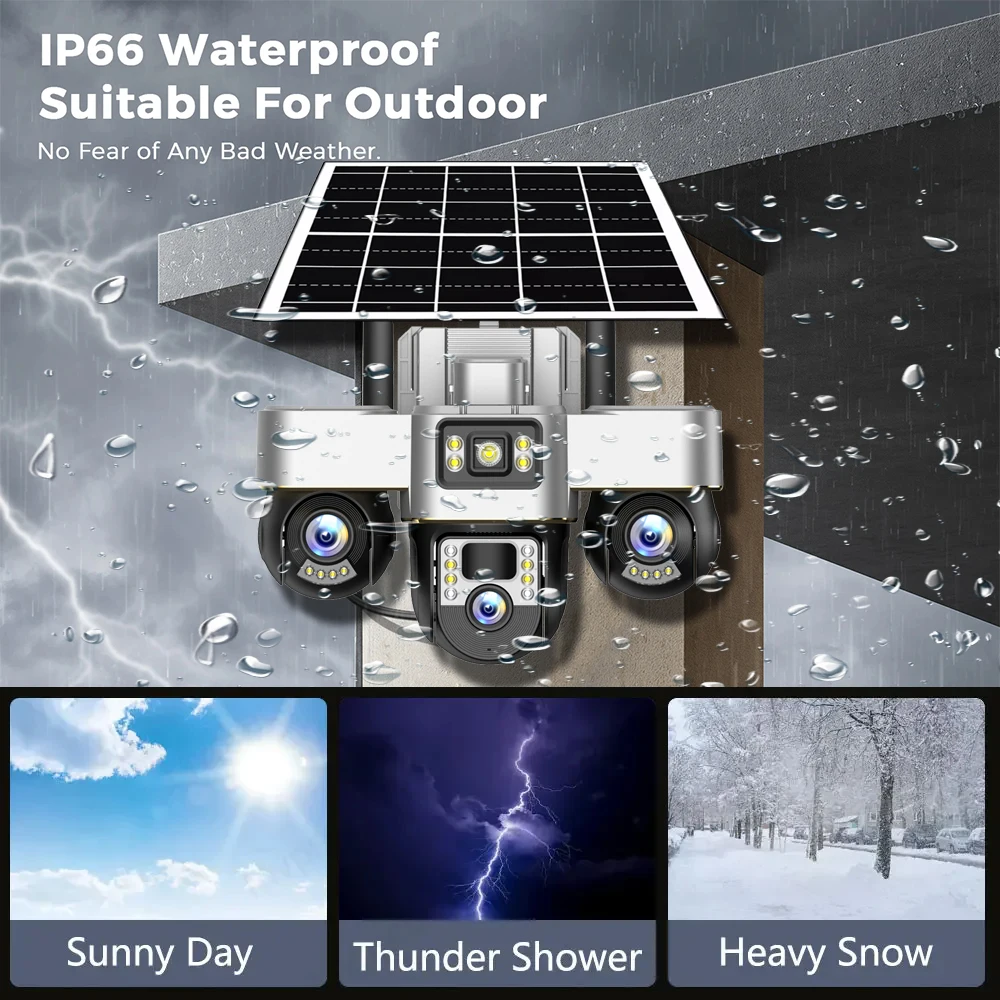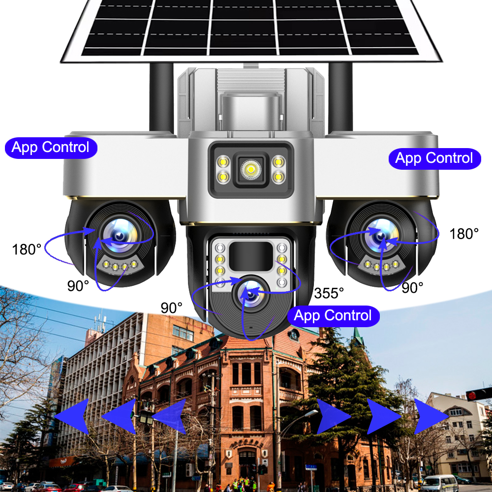 Wifi Security Camera Solar Powered 3 PTZs Lens 360 Rotate IP CCTV Cameras Tri-lens 15MP Night Vision Outdoor Video Surveillance