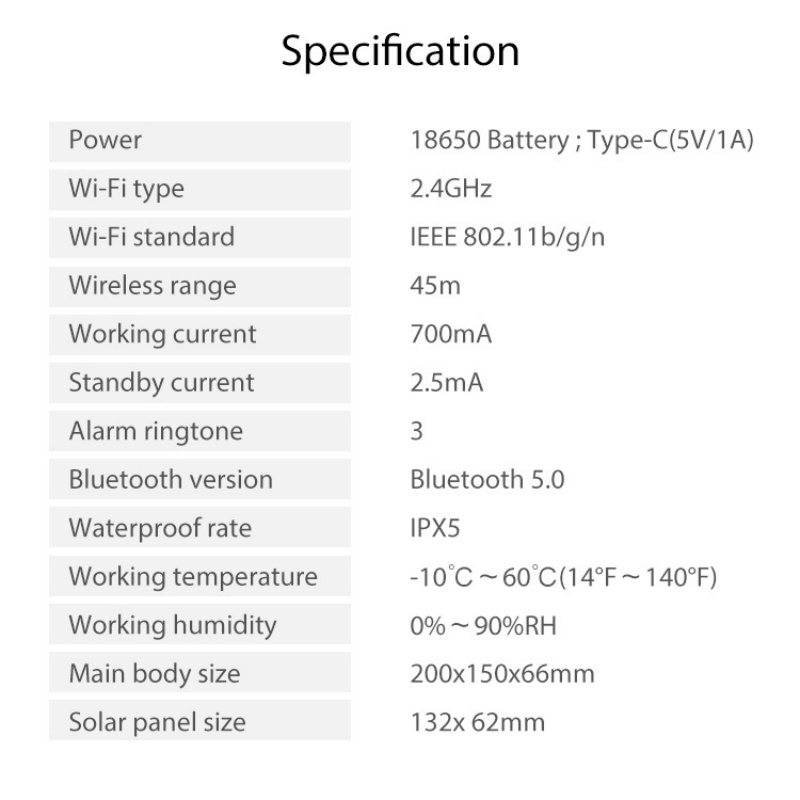 Maximum alarm sound: 95dB@1m; 90dB@3m