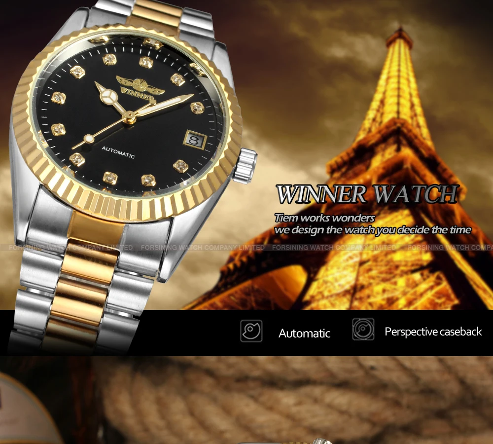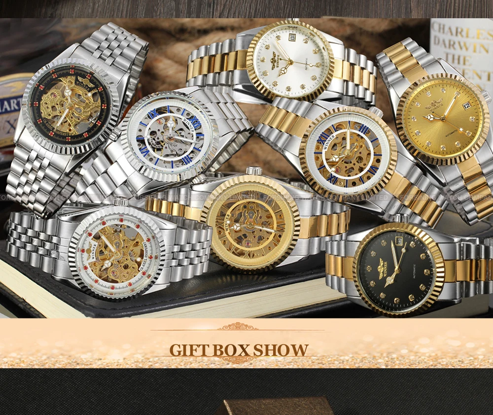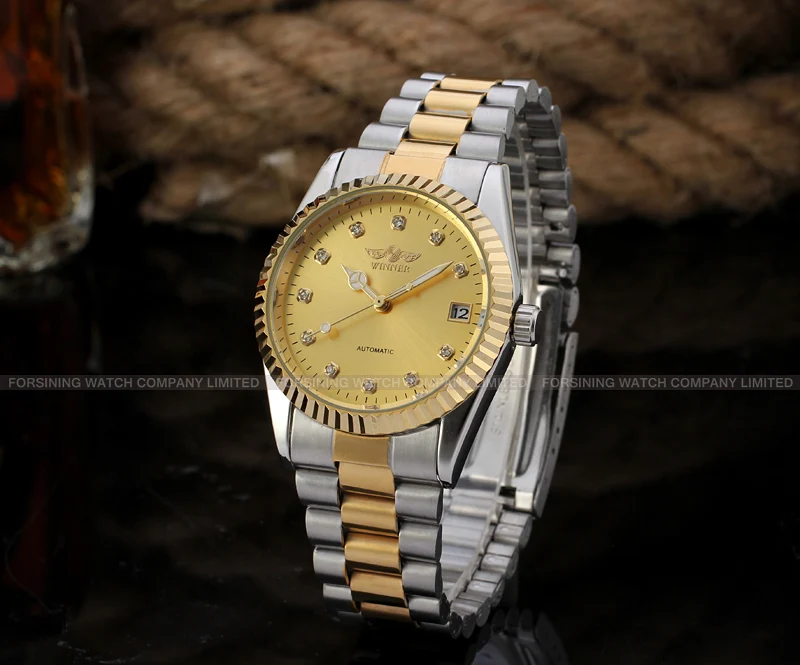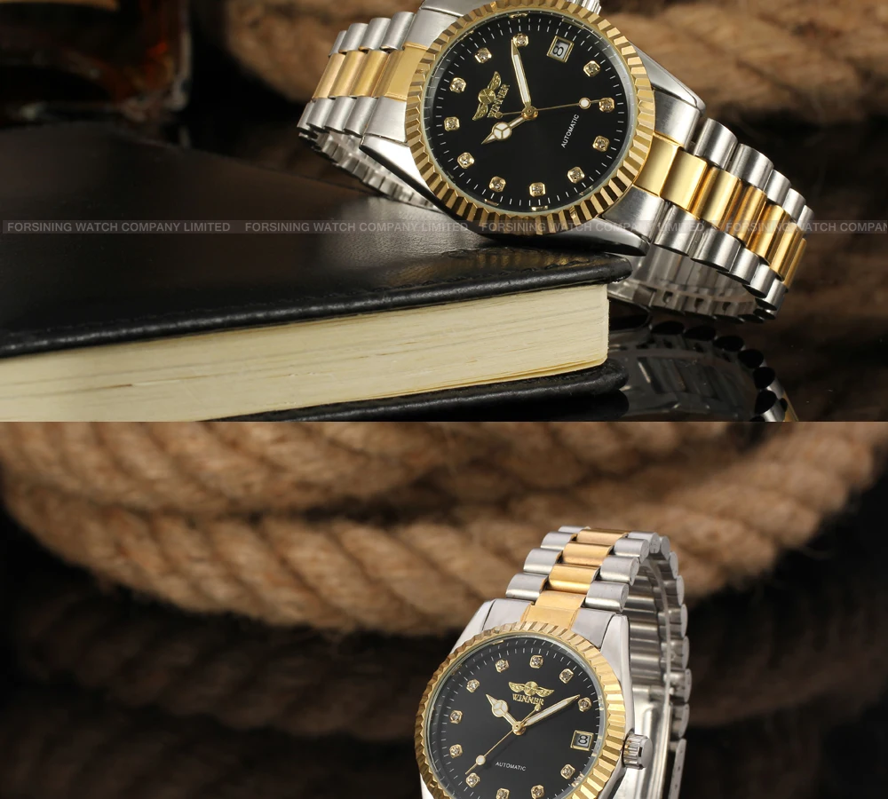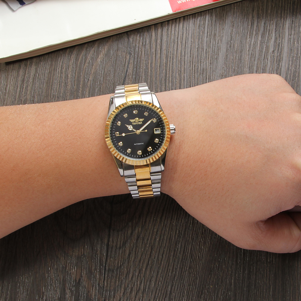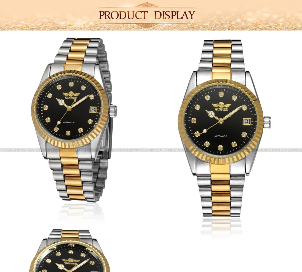 WINNER Luxury Brands Small Size 36mm Business Man Watch Date Automatic Movement Stainless Steel mechanical Unisex Wrist Watches
