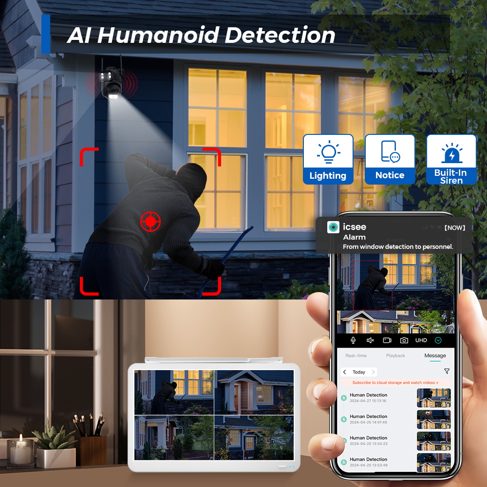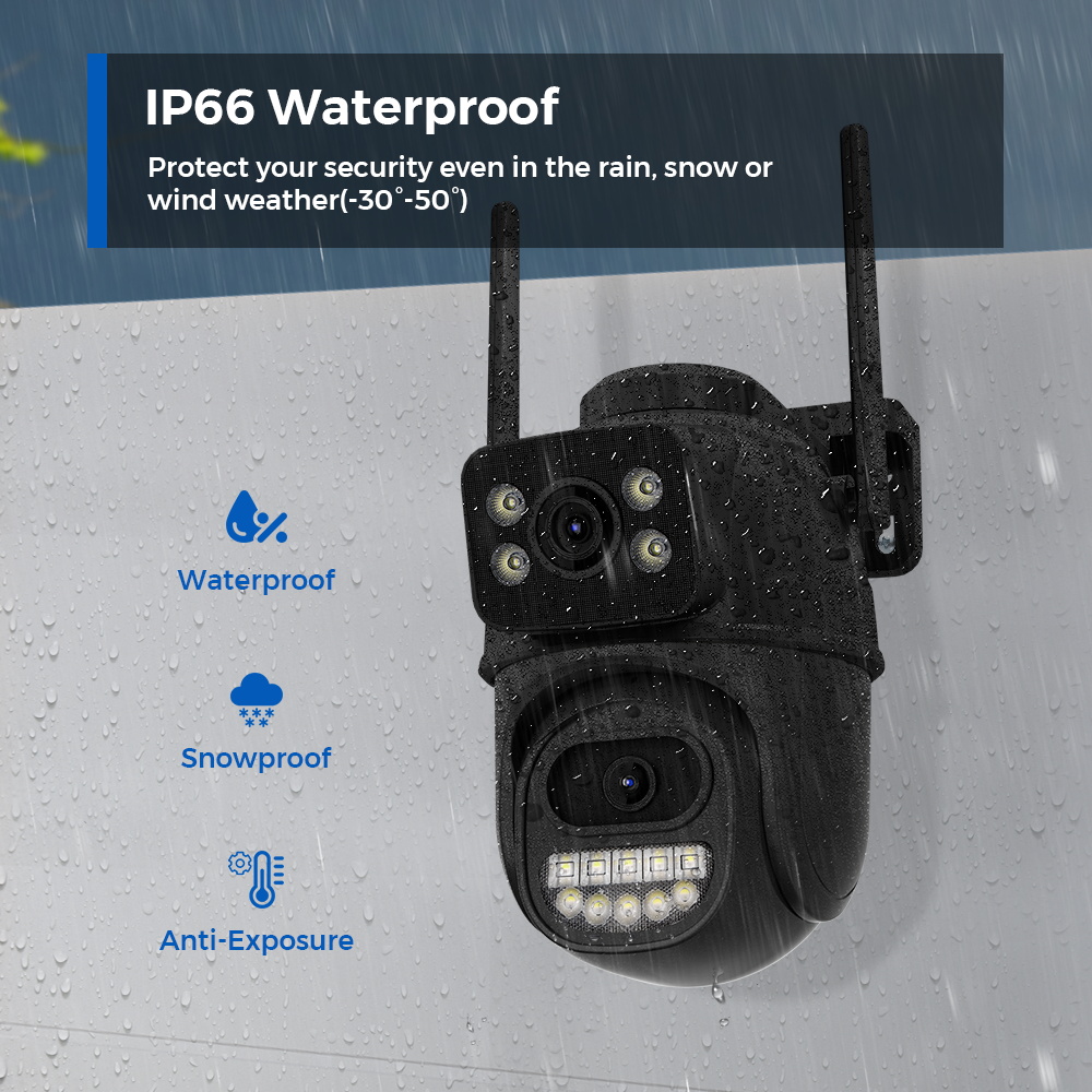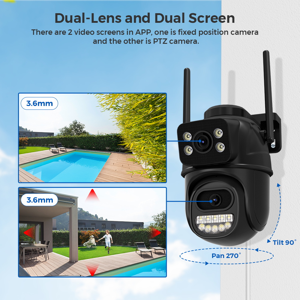 2.Dual-lens dual-sensor dual-screen, wide-angle Viewing + Long Distance Viewing to achieve clear monitoring from far and near;