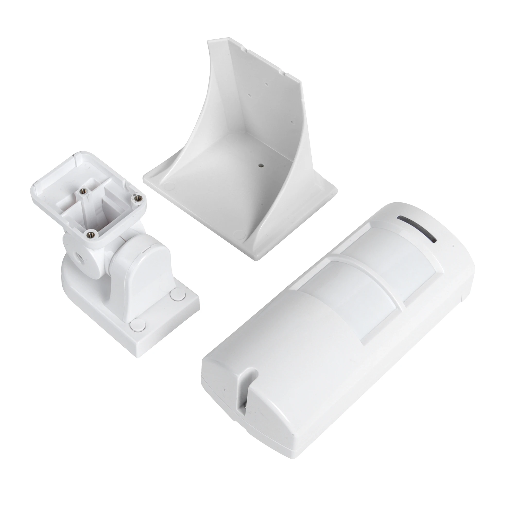 This is a digital wireless motion dual PIR detector with remarkable functions, it can avoid outdoor interference from sunshine, UV & RF, head light on car etc and is highly effective for water/dust/insects/ wind proof. It is matched with follow advanced technology: direct calculation and analysis technology from intelligent high-speed microchip to intrusion infrared signal, double polarity test technology, automatic temperature compensation technology, direct adjustment technology to sensitivity on digital signal, filtering technology from multi-layer infrared channels to mixed light.Its particular calculation on pets chargeable data can avoid false alarm caused by 20KG small animals effectively. At the same time , it is also outstanding in anti hot air, waving curtains etc, can offer forced test on the base of 4-grade sensitivities. Its unique low-power-consumption solution can offer a guaranty of 24 months' factory battery life expectancy. In a word, this detector is advanced and stable enough to offer best security Protection indoor and outdoor with its IP65 water proof structure.