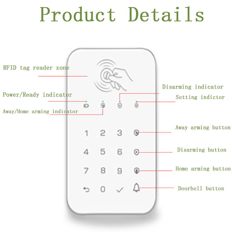 The keyboard lock can be connected to the 433MHz frequency encoding method EV1527 alarm host to work, and can unlock the alarm siren sound