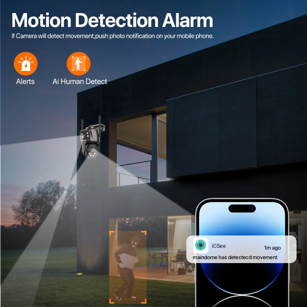 Smart AI Humanoid detection technology, send a notification to App when abnormal motion is detected, records a short video at the same time