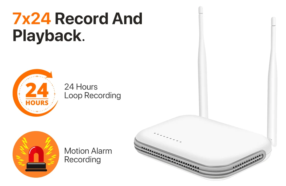 – The NVR supports 7×24 hours loop recording, motion detection recording, and other recording modes, you can playback the recording to view;