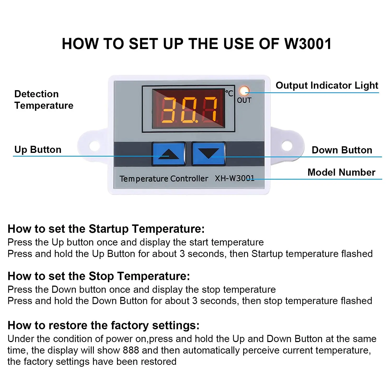 1. Press up button show the starting temperature.