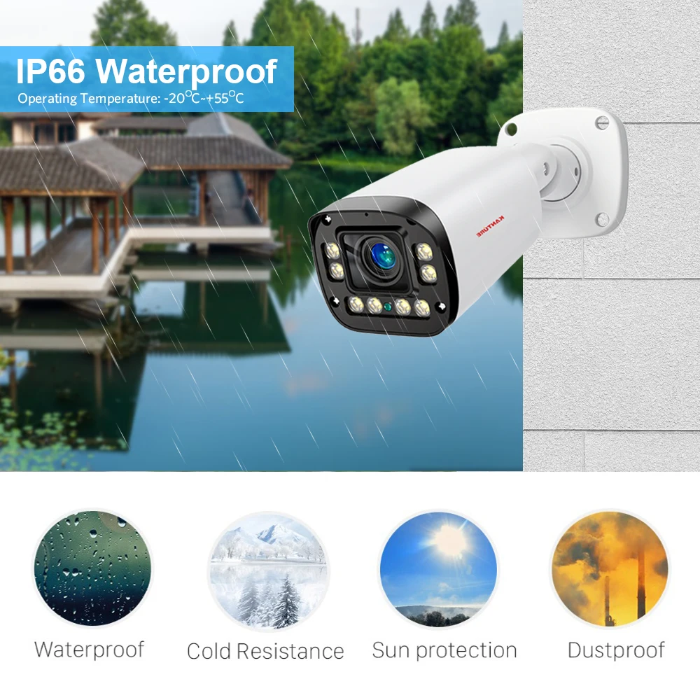 KANTURE surveillance camera has a solid aluminum body and housing,with an IP66 waterproof rating. So you can feel free to install it outdoor, like in your garage, backyard, or anywhere else. It can stand harsh weather conditions, including rain, snow, intense cold and heat(-40℃~50℃).