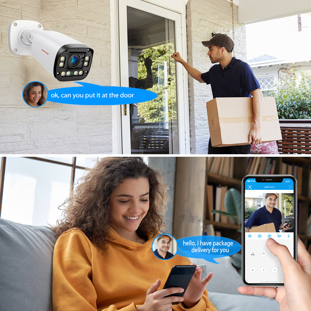 Two-way audio feature allows you to listen and speak through the camera.With microphone and speaker, you can better understand the details that are happening around your house.