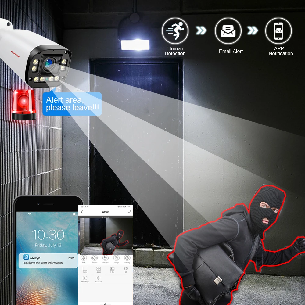 When Someone Breaks Into Shooting Area, The Camera Will Make Alarm Sound Alarm Messages Will Be Pushed To Your Phone App.