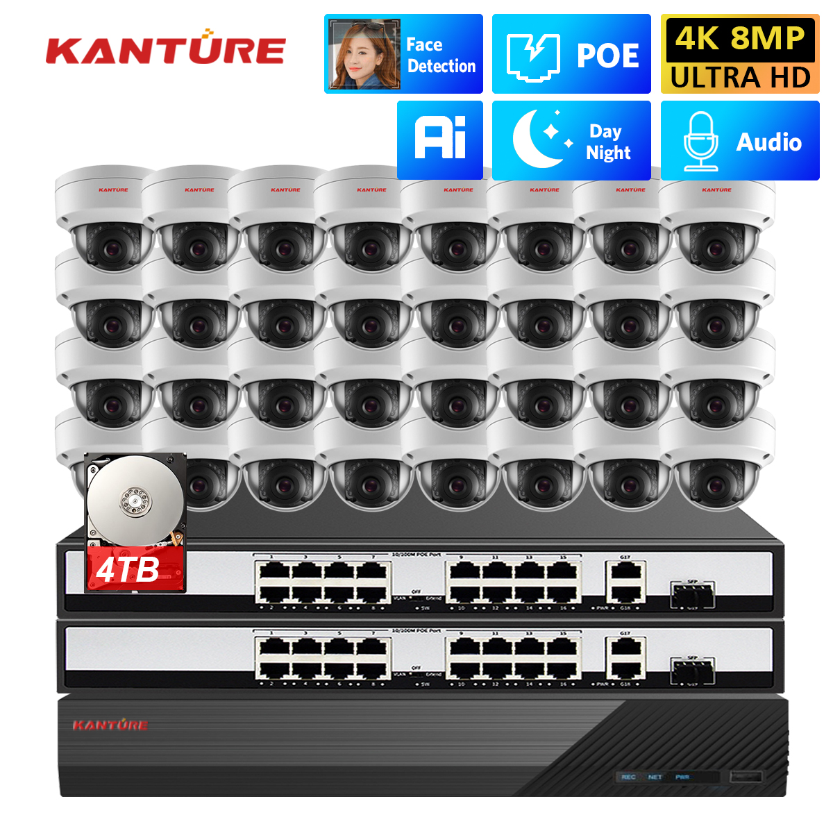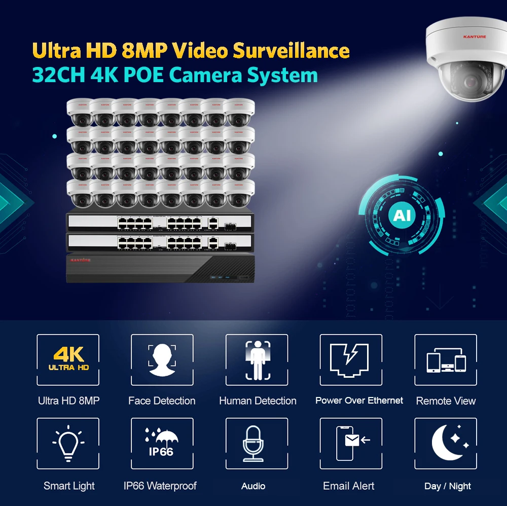 16/24/32*H.265 4K Indoor Outdoor Waterproof POE camera