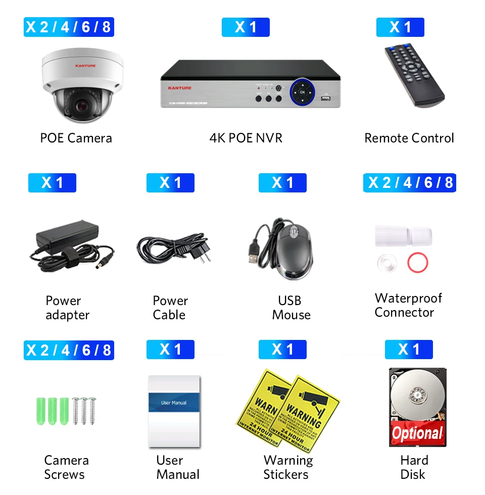 2/4/6/8*H.265 4K Indoor Outdoor Waterproof POE camera