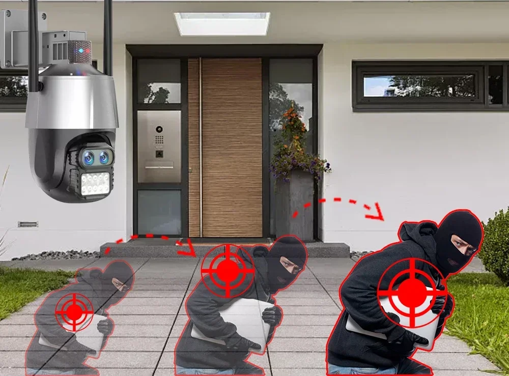 When someone passes through the alarm area, the camera will detect the person's movement. And track people.
