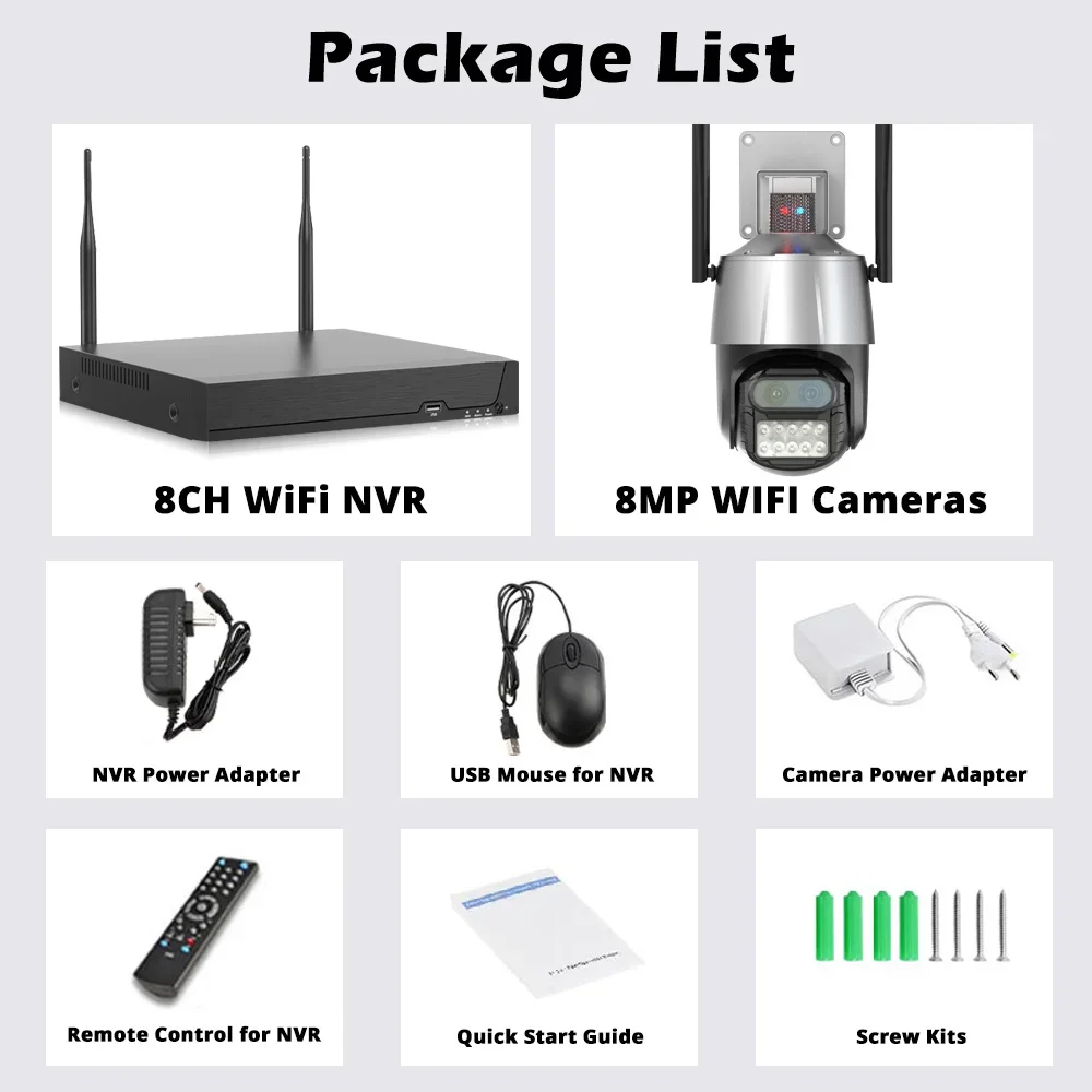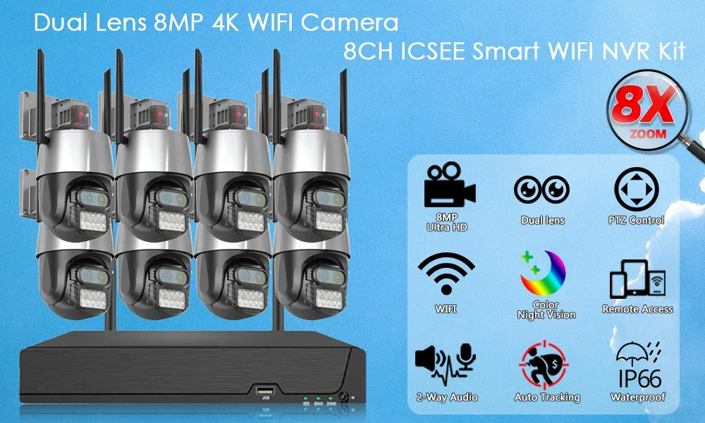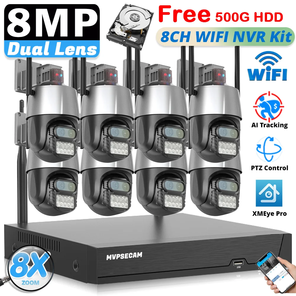 XMEYE Smart HD Video Wireless Surveillance System 8CH WiFi NVR Kit 4K 8MP 8X Zoom Outdoor Wi-Fi Cameras Wireless CCTV System