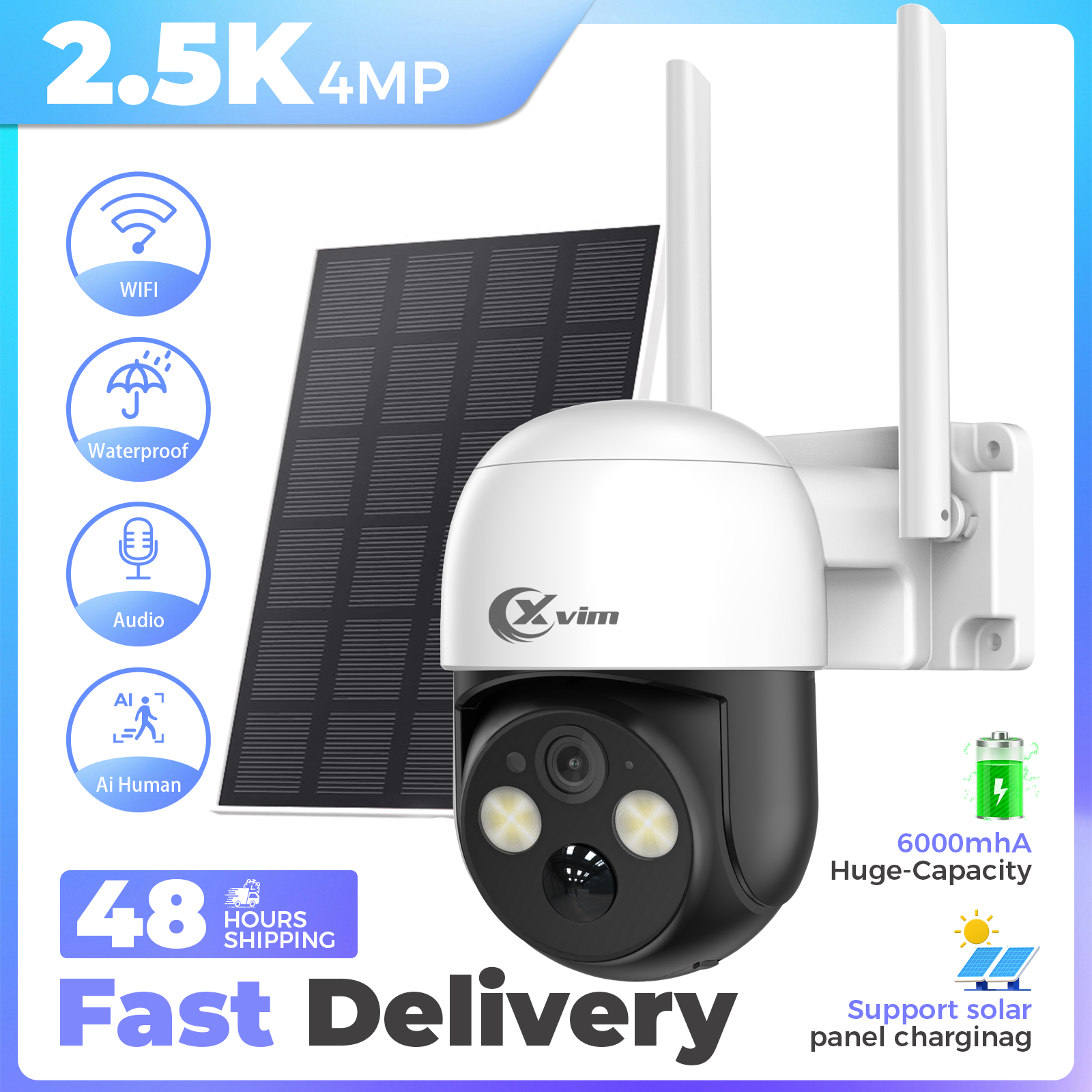 XVIM 4MP PTZ Wifi Wireless Outdoor Solar Camera