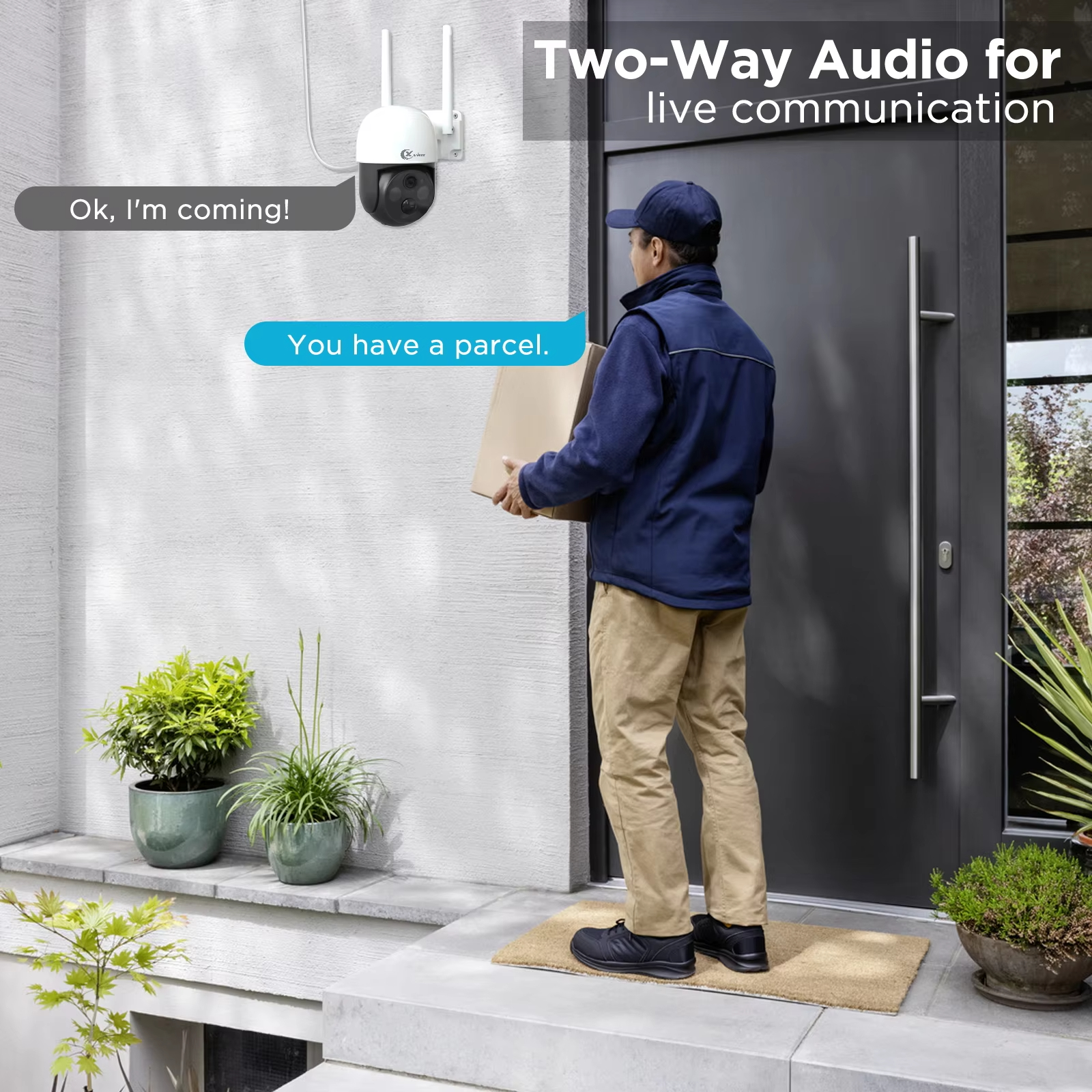 Built-in microphone and speaker, you can easily talk throught your wireless camera.