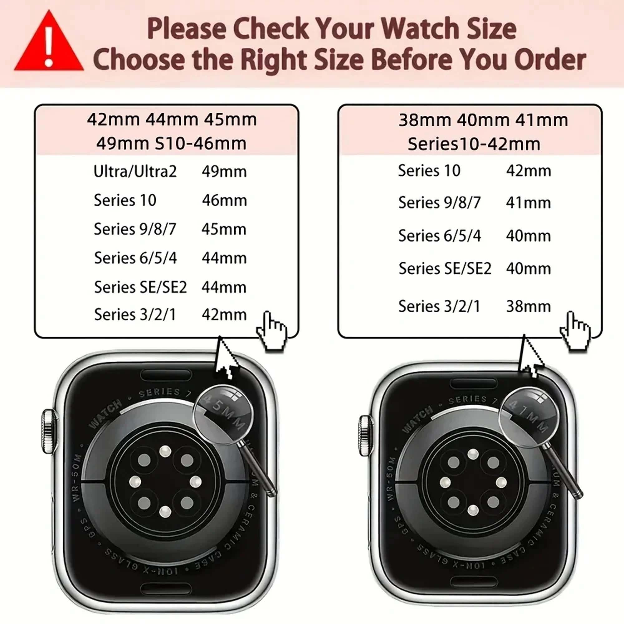 1.For apple watch Series Ultra/9/8/7/6/5/4/3/SE —42mm=44mm=45mm=49mm ;38mm=40mm=41mm
